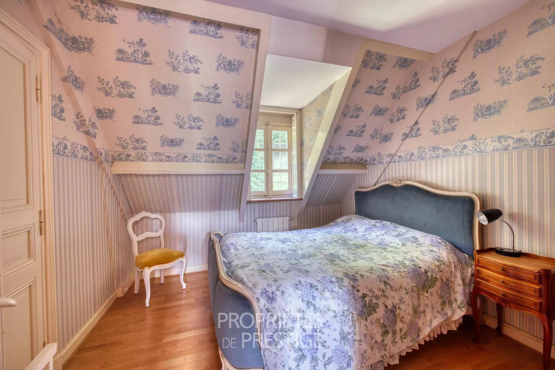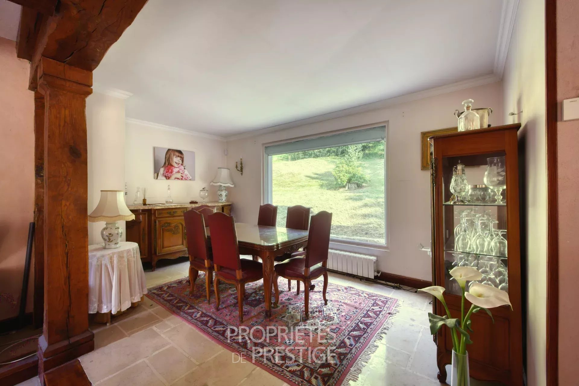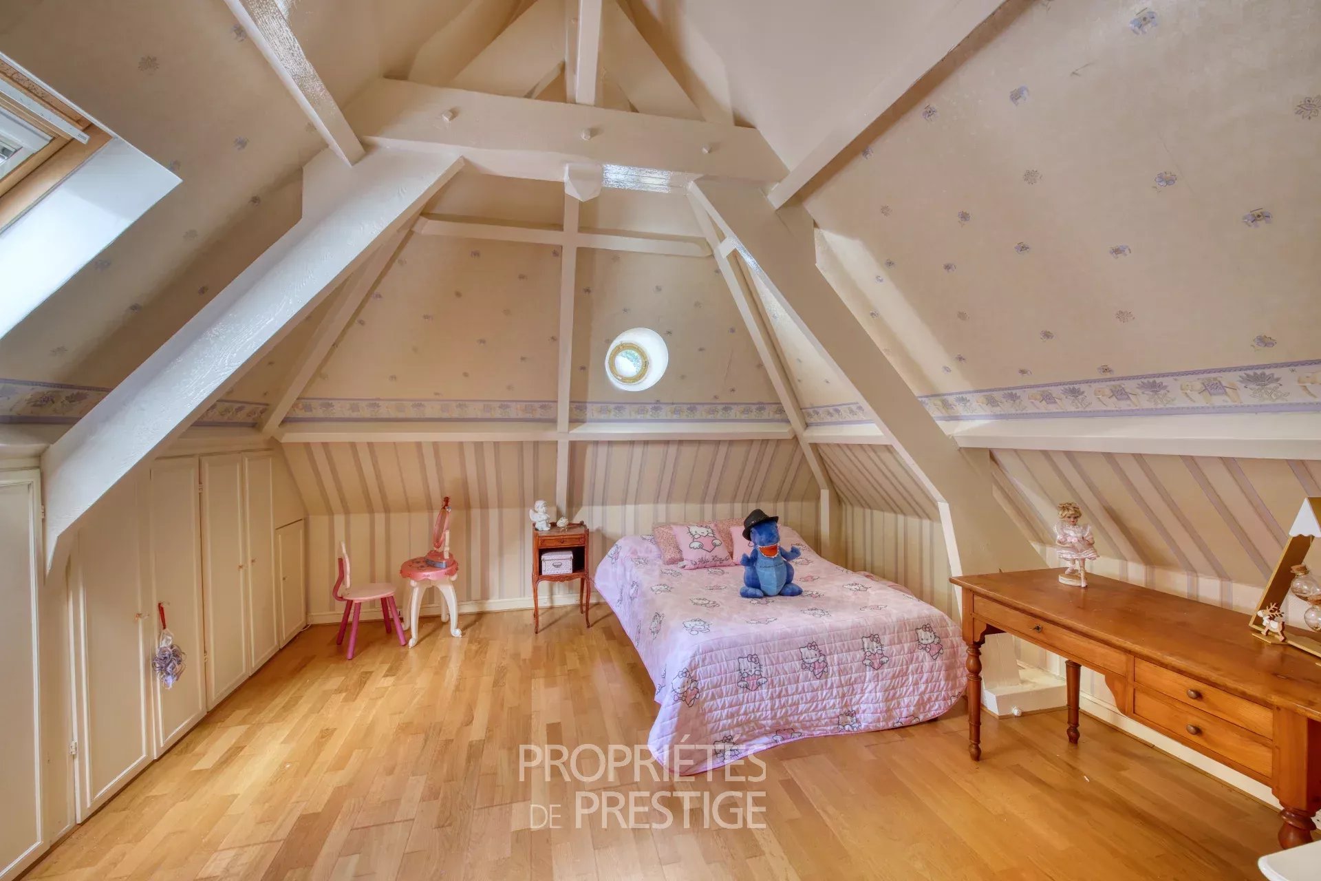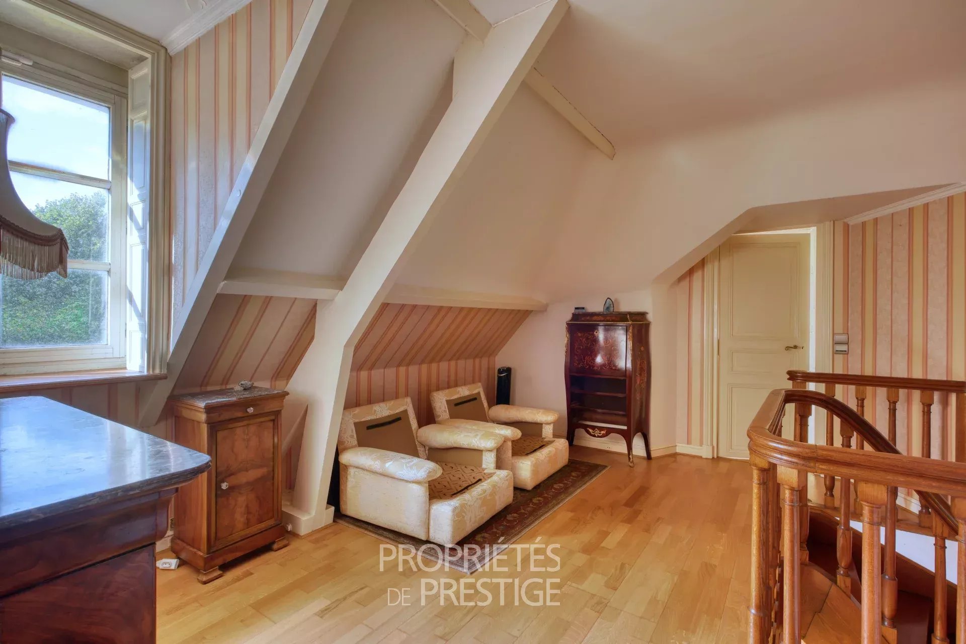 Située à 500 m du centre-village de Buc, cette propriété étendue sur un hectare en lisière de forêt domaniale de Versailles, vous offre un cadre exceptionnel pour la région. La demeure style Ile de France compte un total de 8 pièces sur 287 m² habitables (320m² utiles), dont une vaste réception de 80 m² avec une cheminée ancienne et une double exposition ouvrant sur le parc et la forêt, une cuisine indépendante, un grand bureau... A l’étage, suite parentale avec salle de bain et dressing, trois chambres, deux salles de bain… Le sous-sol est aménagé avec une salle de billard, une cave à vin, des espaces de stockage, une salle forte… Côté jardin, la maison est entourée de terrasses pour profiter de toutes les expositions. La piscine à rénover est exposée plein sud, avec vue dominante sur la vallée. Le parc s’étend jusqu’à la limite de la forêt domaniale bordée d’une enceinte en meulière. Un court de tennis à rénover est situé sur la partie supérieure du parc. Un environnement naturel unique à seulement 13 km des portes de Paris. Golf de La Boulie à proximité. Lycée Franco Allemand à 1,3 km. Possibilités de division et de constructions supplémentaires (environ 4000m² en zone UH du PLU).