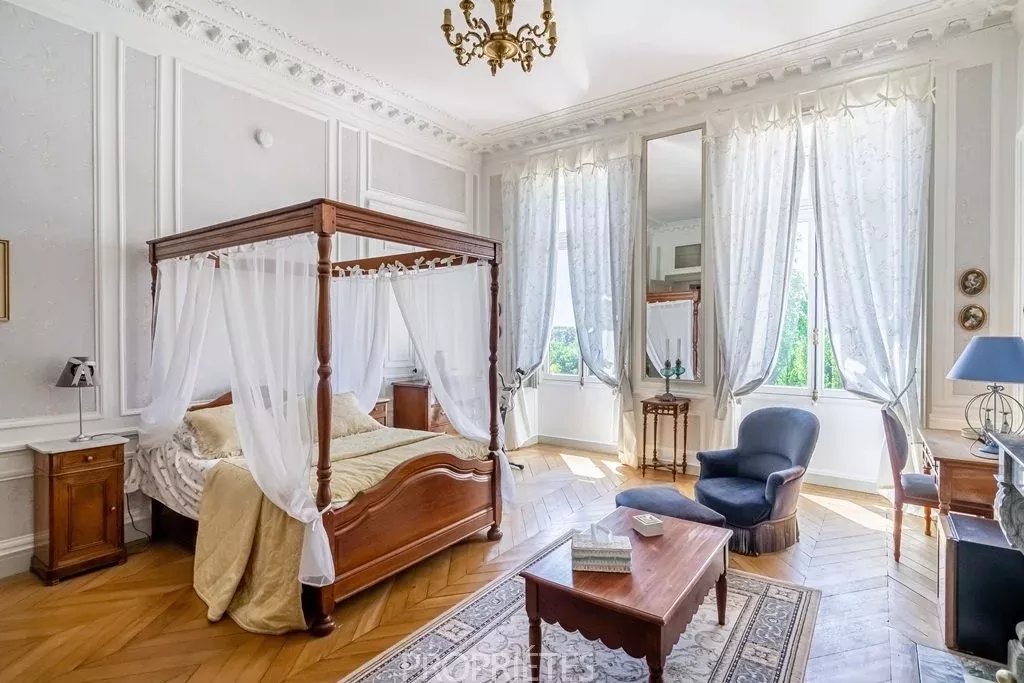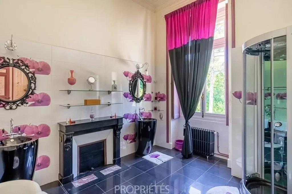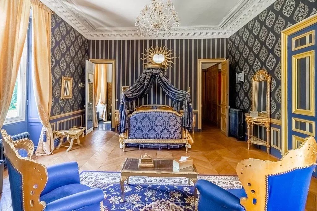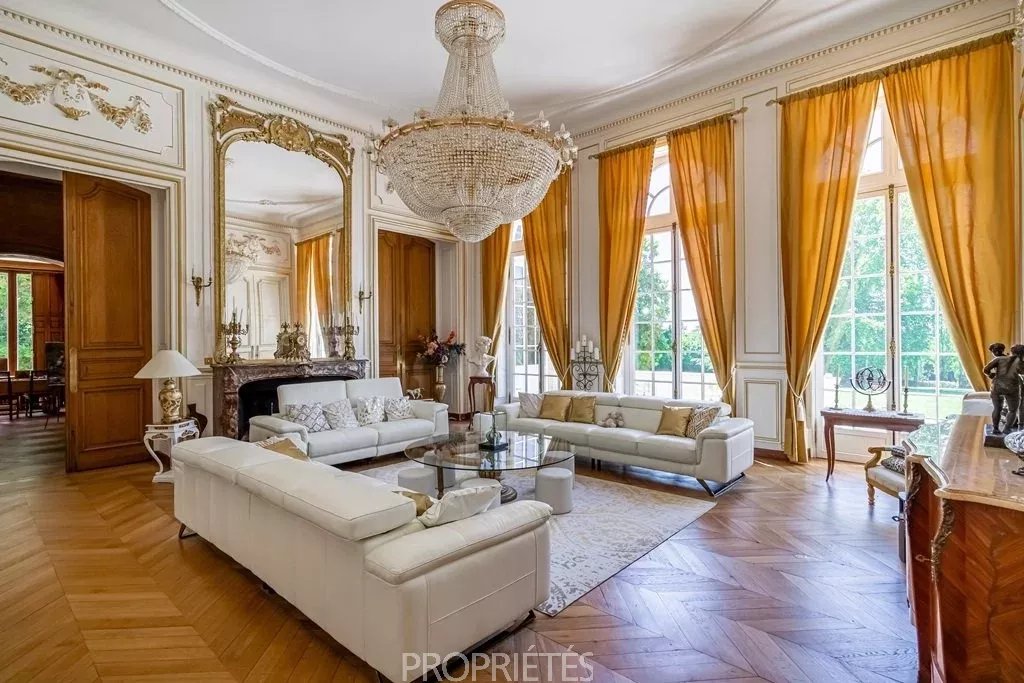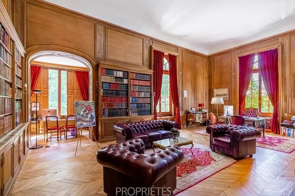 Situé en Essonne à 35 km au sud de Paris, ce château de 1400m² habitables édifié en 1848, d’une architecture classique et très équilibrée, a été entièrement restauré dans les règles de l’art en 2012. D’un style harmonieux sur les quatre façades, le château se caractérise par son toit à la Mansart, ses balustres présents sur les 3 niveaux d’habitation, ses façades en pierre de taille et stuc, les pilastres ordonnancés au rez-de-chaussée et à l’étage, ses portes fenêtres cintrées… L’intérieur du château surprend avant tout par les volumes dégagés avec des pièces à la fois vastes et proportionnées. Le hall d’entrée avec son escalier magistral donne le ton dès que l’on franchit la porte : marbres, colonnes, pierre de taille, ferronneries et grande hauteur sous plafond. Les 4 pièces de réception face au parc sont de la même trempe : grandes portes vitrées garantissant une luminosité permanente, parquets point de Hongrie, cheminées en marbre, miroirs, moulures, dorures et un ensemble de boiseries particulièrement réussi dans le salon de musique. La cuisine contemporaine aménagée au rez-de-chaussée s’accorde parfaitement avec l’ensemble. Au premier étage, une suite parentale, comprenant une grande chambre avec vue dominante sur le parc, une salle de bain, un dressing et une salle de sport. Cinq autres chambres avec salle bain et cheminée en marbre déclinent des thématiques différentes. Au 2ème étage, 10 chambres-studio avec salles de bain. L’espace du sous-sol accueille un vaste spa comprenant piscine, sauna, hammam, salle de massage, salle de sport. Un atelier et une cave à vin complètent ce niveau. Le domaine qui s’étend sur 10 hectares, démarre par un parc sur sa partie haute où est implanté le château, puis descend graduellement vers la vallée. Depuis la vaste terrasse du château dominant le parc, une grande pelouse en pente douce jusqu’au belvédère permet d’avoir une jolie perspective sur les jardins. En contre-bas une étendue de prairie puis de bois. Depuis le côté droit de la terrasse, on aperçoit une jolie pièce d’eau avec un pavillon, à l’arrière un terrain de tennis puis à nouveau une partie boisée. L’ensemble du parc à l’anglaise est harmonieux et laisse des vues dégagées sur la vallée, il se prolonge à l'est par une partie boisée aux essences variées. Plusieurs golfs sont implantés à proximité. L’accès à la propriété est aisé depuis Paris par l’autoroute A6 ou depuis l’aéroport Charles de Gaulle par la Francilienne.