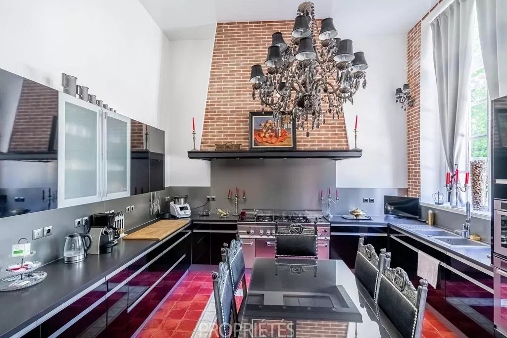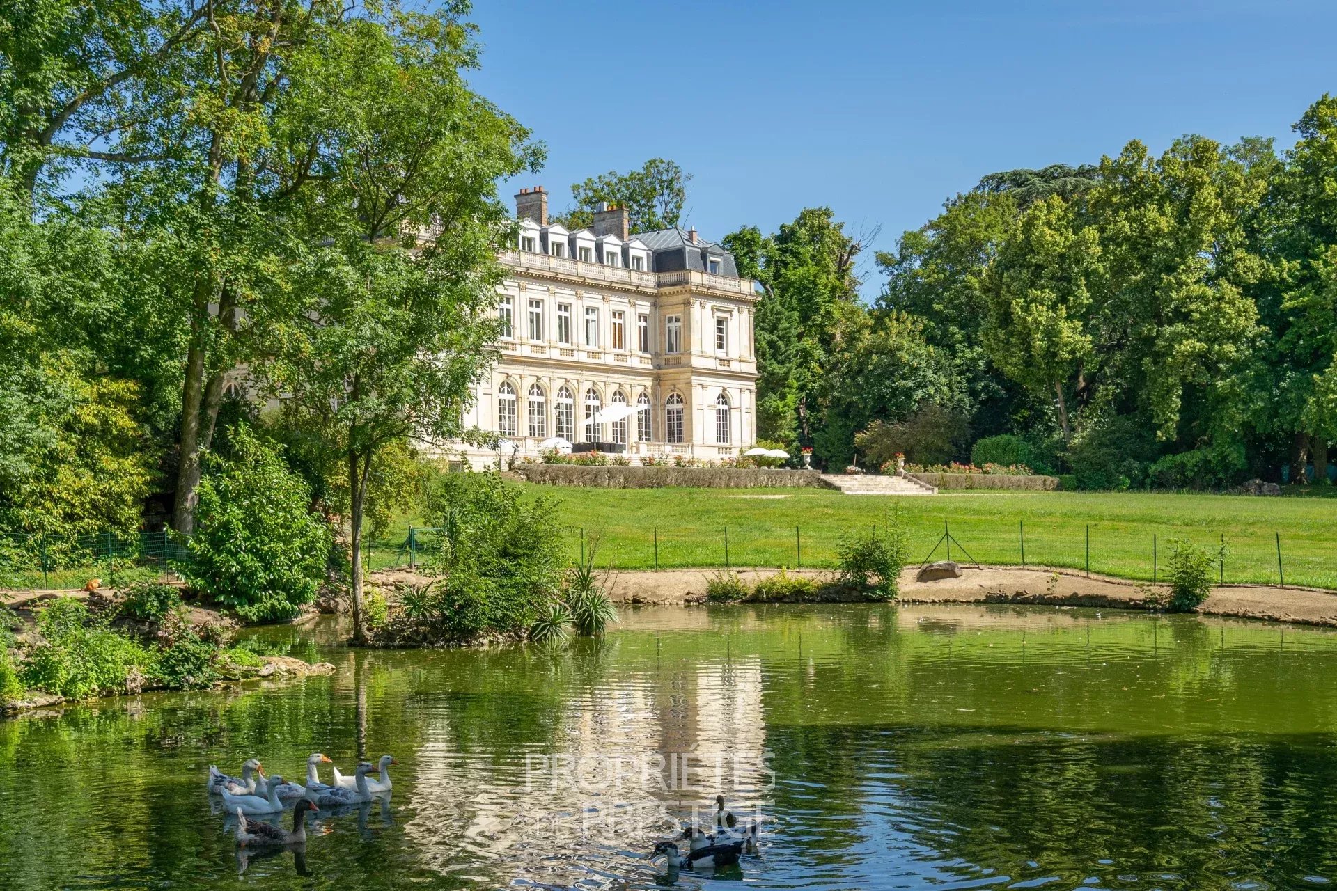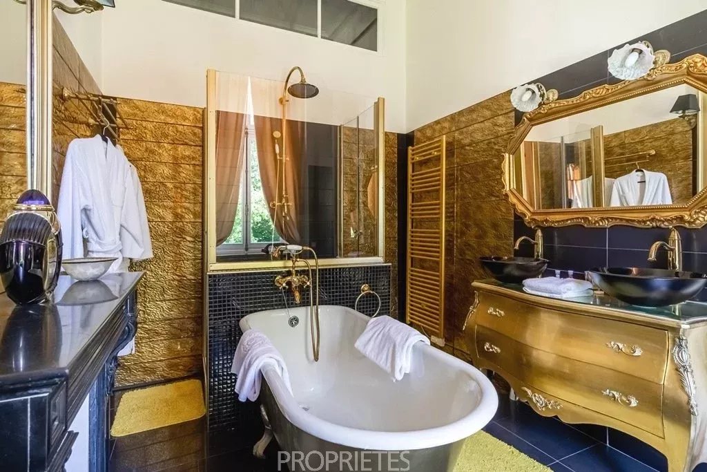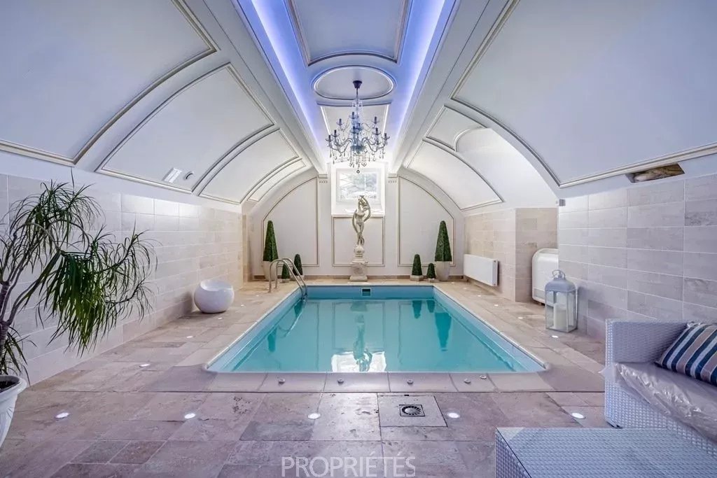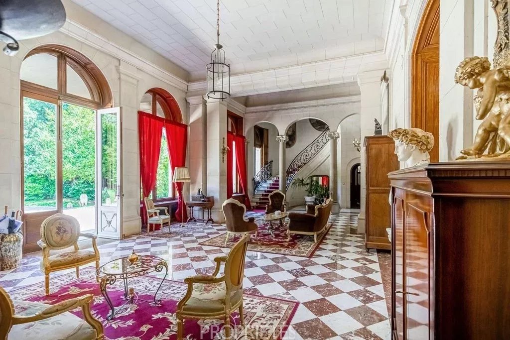 Situé en Essonne à 35 km au sud de Paris, ce château de 1400m² habitables édifié en 1848, d’une architecture classique et très équilibrée, a été entièrement restauré dans les règles de l’art en 2012. D’un style harmonieux sur les quatre façades, le château se caractérise par son toit à la Mansart, ses balustres présents sur les 3 niveaux d’habitation, ses façades en pierre de taille et stuc, les pilastres ordonnancés au rez-de-chaussée et à l’étage, ses portes fenêtres cintrées… L’intérieur du château surprend avant tout par les volumes dégagés avec des pièces à la fois vastes et proportionnées. Le hall d’entrée avec son escalier magistral donne le ton dès que l’on franchit la porte : marbres, colonnes, pierre de taille, ferronneries et grande hauteur sous plafond. Les 4 pièces de réception face au parc sont de la même trempe : grandes portes vitrées garantissant une luminosité permanente, parquets point de Hongrie, cheminées en marbre, miroirs, moulures, dorures et un ensemble de boiseries particulièrement réussi dans le salon de musique. La cuisine contemporaine aménagée au rez-de-chaussée s’accorde parfaitement avec l’ensemble. Au premier étage, une suite parentale, comprenant une grande chambre avec vue dominante sur le parc, une salle de bain, un dressing et une salle de sport. Cinq autres chambres avec salle bain et cheminée en marbre déclinent des thématiques différentes. Au 2ème étage, 10 chambres-studio avec salles de bain. L’espace du sous-sol accueille un vaste spa comprenant piscine, sauna, hammam, salle de massage, salle de sport. Un atelier et une cave à vin complètent ce niveau. Le domaine qui s’étend sur 10 hectares, démarre par un parc sur sa partie haute où est implanté le château, puis descend graduellement vers la vallée. Depuis la vaste terrasse du château dominant le parc, une grande pelouse en pente douce jusqu’au belvédère permet d’avoir une jolie perspective sur les jardins. En contre-bas une étendue de prairie puis de bois. Depuis le côté droit de la terrasse, on aperçoit une jolie pièce d’eau avec un pavillon, à l’arrière un terrain de tennis puis à nouveau une partie boisée. L’ensemble du parc à l’anglaise est harmonieux et laisse des vues dégagées sur la vallée, il se prolonge à l'est par une partie boisée aux essences variées. Plusieurs golfs sont implantés à proximité. L’accès à la propriété est aisé depuis Paris par l’autoroute A6 ou depuis l’aéroport Charles de Gaulle par la Francilienne.