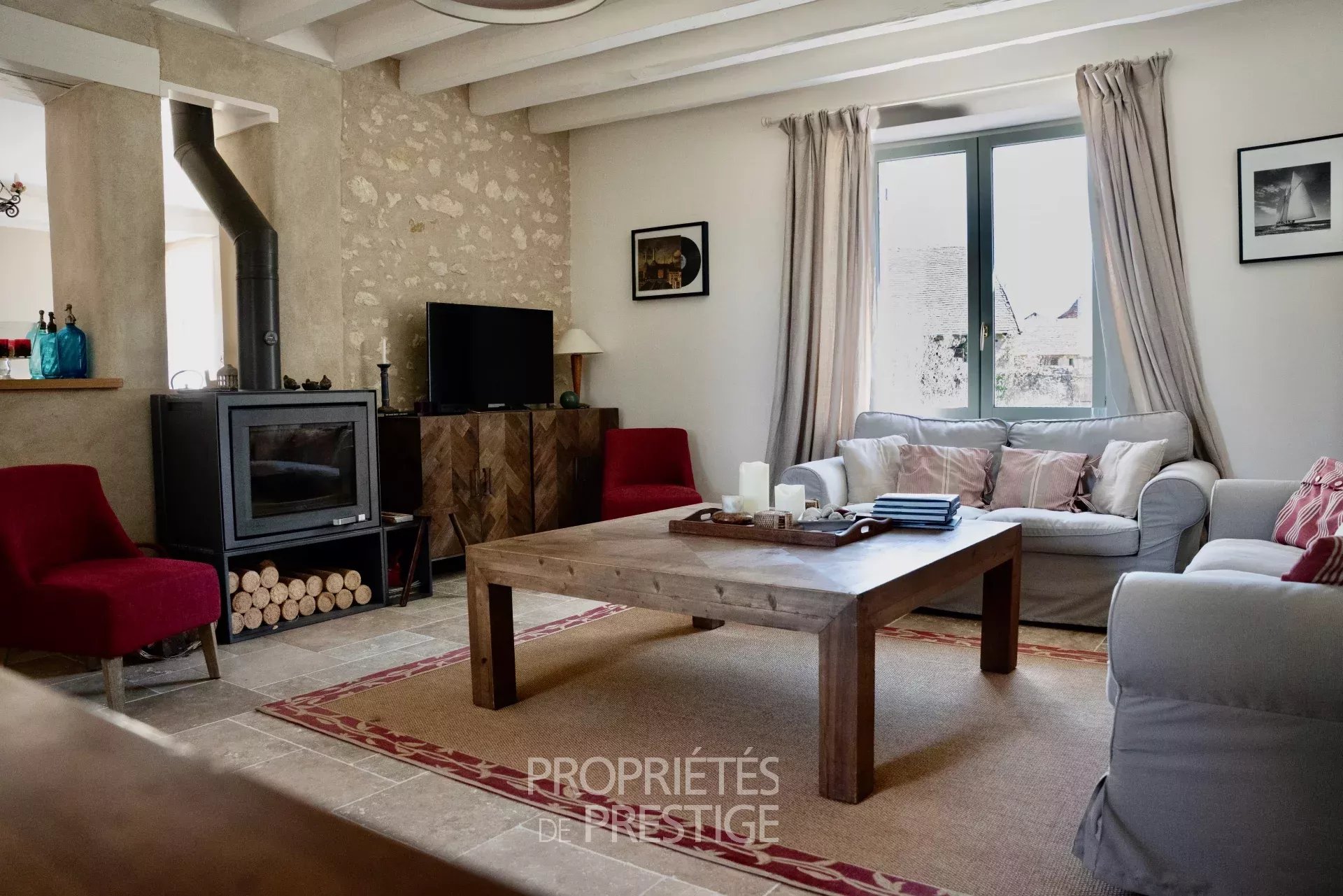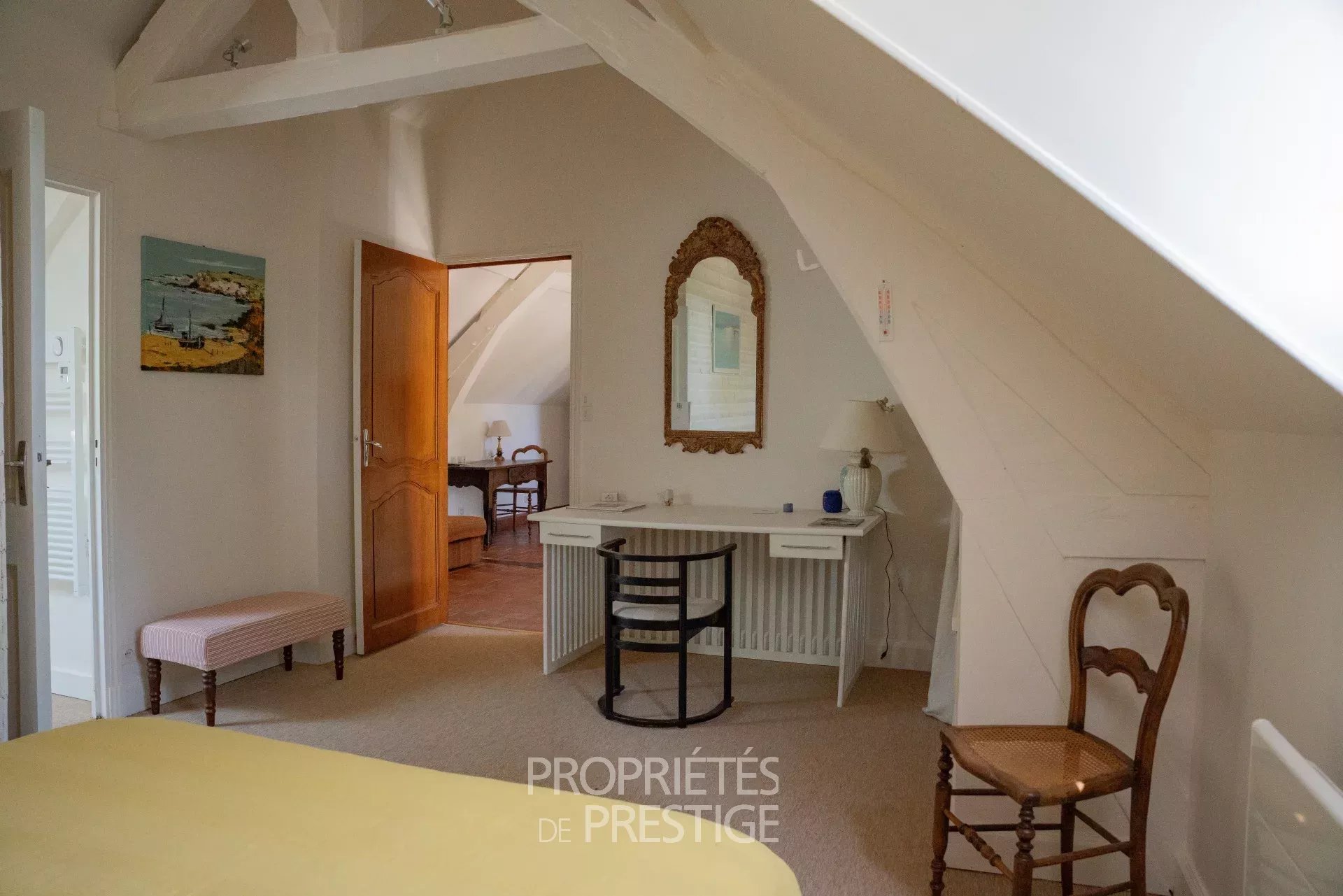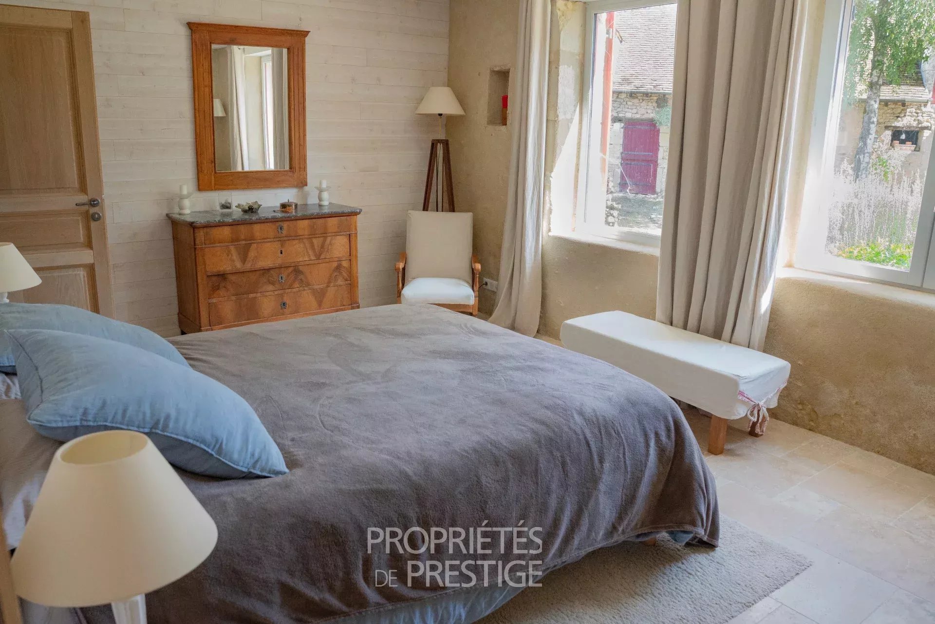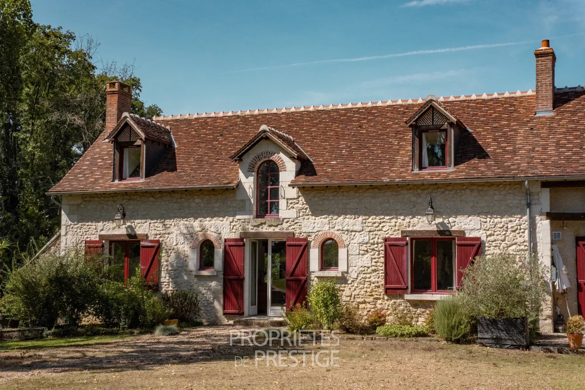 Située à 20 km à l'est de Loches, ancienne ferme de 1870 et ses dépendances édifiée sur un parc de 9000m2 avec vue sur la campagne. La maison d'habitation, une longère de 1850 totalisant 273m2 sur deux niveaux, a été entièrement rénovée en 2021 avec des matériaux traditionnels pour allier le charme de l'ancien à une fonctionnalité contemporaine. Le hall d'entrée distribue d'une part sur un salon cosy avec une grande cheminées, d'autre part sur une grande pièce de vie avec un espace salon et une cuisine salle à manger donnant sur la terrasse côté cour. L'ensemble de ces pièces bénéficient d'une double exposition est-ouest permettant de bénéficier d'une belle luminosité à tout moment de la journée. Au RDC toujours, un toilette, une belle chambre avec salle de bain & douche, un dressing. En descendant quelques marches depuis la cuisine, une arrière cuisine avec un accès à la terrasse côté campagne, un toilette, une buanderie et une cave à vin ancienne. A l'étage, le pallier distribue, d'un côté, vers une chambre avec salle de douche et un toilette, de l'autre, un couloir desservant deux chambres supplémentaires, un bureau, un dressing et une salle de bain. Concernant les dépendances, dans le prolongement du bâtiment d'habitation, une grange faisant office de garage et d'atelier puis un débarras ou local à vélos. Toutes les toitures de ces bâtis ont été refaites en 2021. Faisant face à ce corps de bâtiment, une seconde longère, anciennement bâtiments de ferme comprenant, écurie, étable, remise et petit logement, pour un éventuel usage de stockage ou à réhabiliter. Le parc arboré et agrémenté d'une petite pièce d'eau s'étend en pelouse jusqu'au bois voisin et les prairies alentour. L'ensemble est au calme, avec de jolies vues et sans vis à vis, situé à 1km d'un bourg avec écoles et quelques commerces, 3km de Montrésor, 20km de Loches, 60 km de Tours.