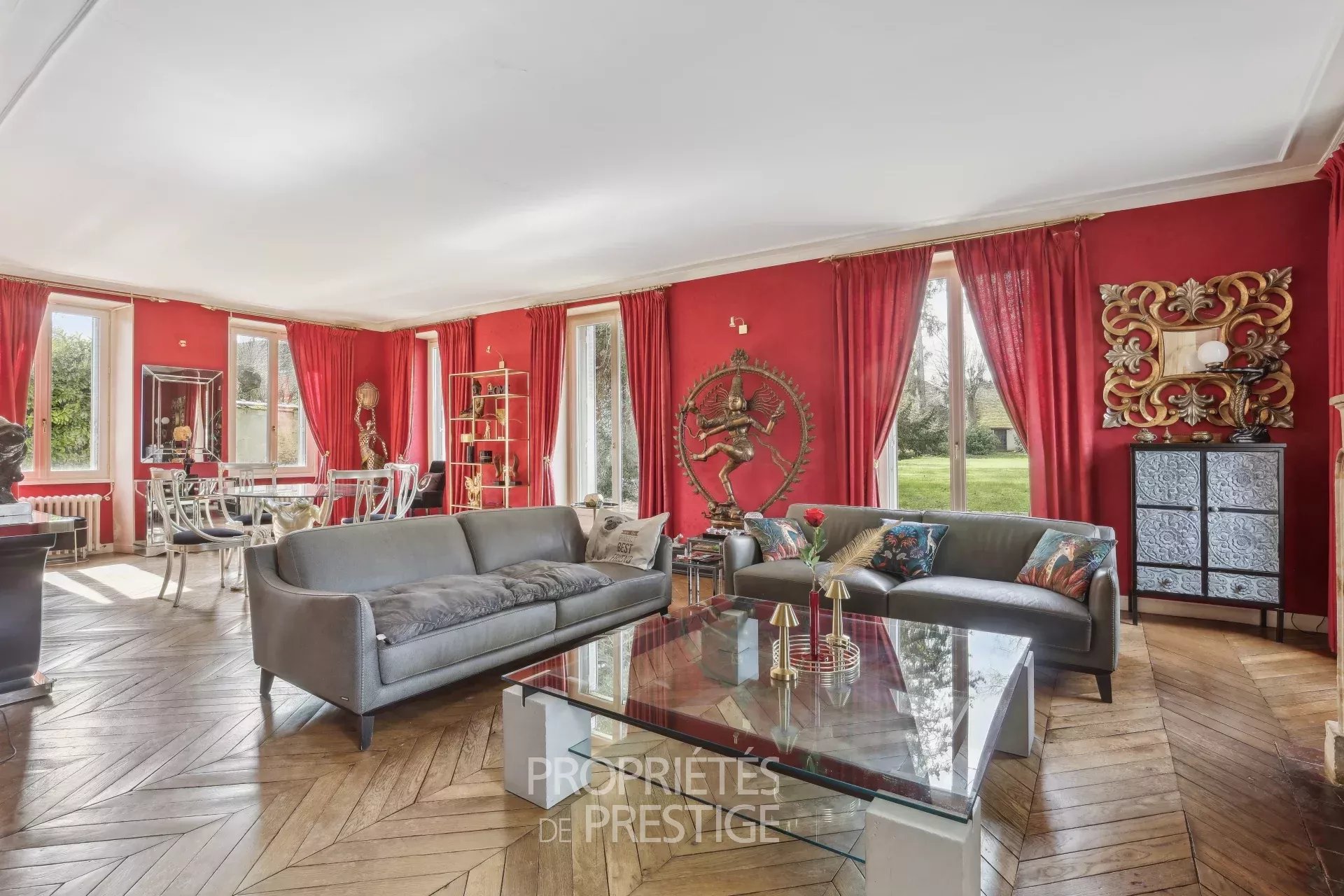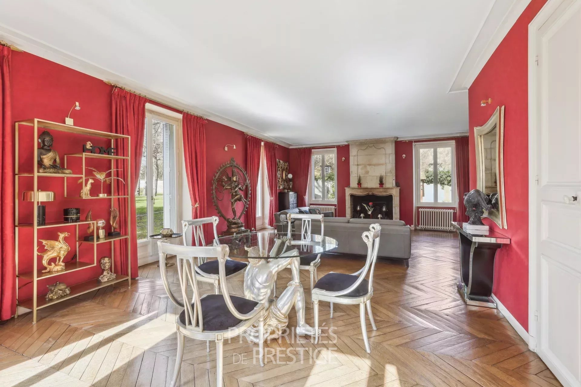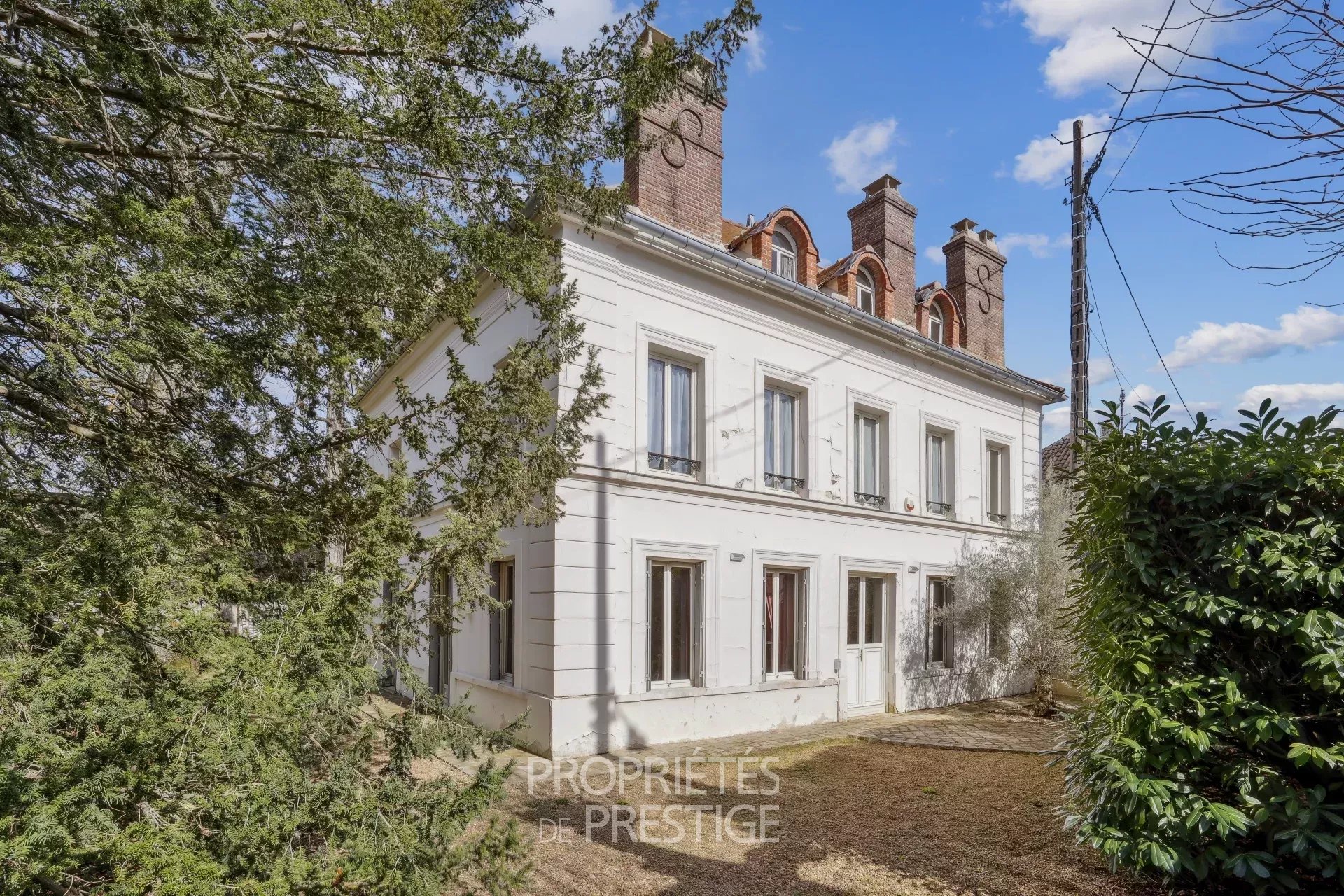Au coeur d'un village avec écoles et quelques commerces situé entre Thoiry et Montfort l'Amaury, belle demeure fin XIXème de 318m² habitables édifiée sur un parc arboré de 2512m². Le hall d'entrée dessert d'une part un petit bureau, d'autre part, côté parc, un double séjour très lumineux avec cheminée. Un couloir dessert une salle à manger indépendante et la cuisine avec un accès vers une double cave voutée. Au premier étage, une chambre parentale avec boudoir et salle de bain & douche, une chambre avec bureau, une salle de bain et une 3ème chambre. Au deuxième étage, deux chambres, une salle de bain, un atelier et un vaste grenier avec mezzanine. L'ensemble des éléments d'époque ont été préservés : parquets, dallages, boiseries, cheminées, moulures...
