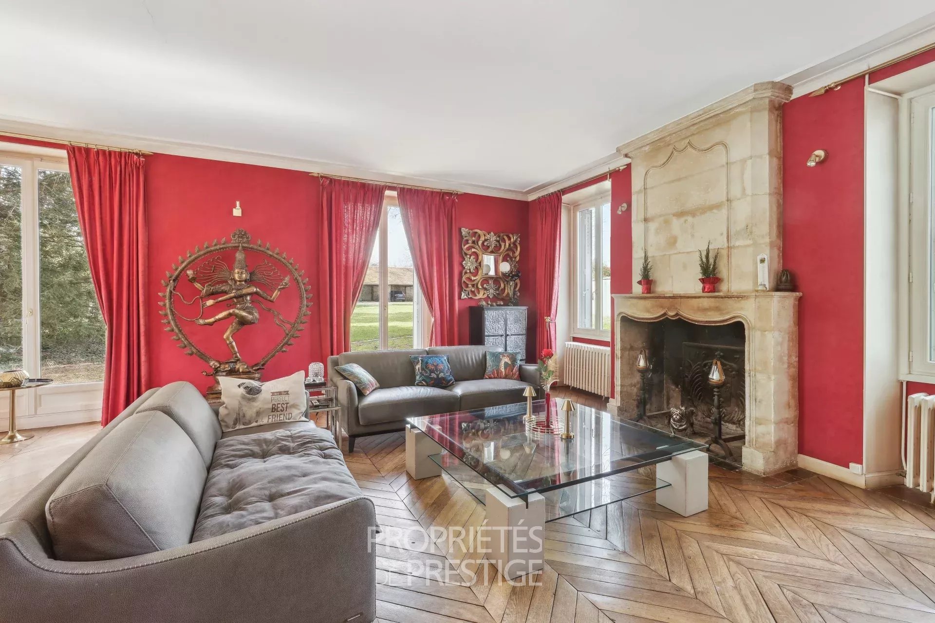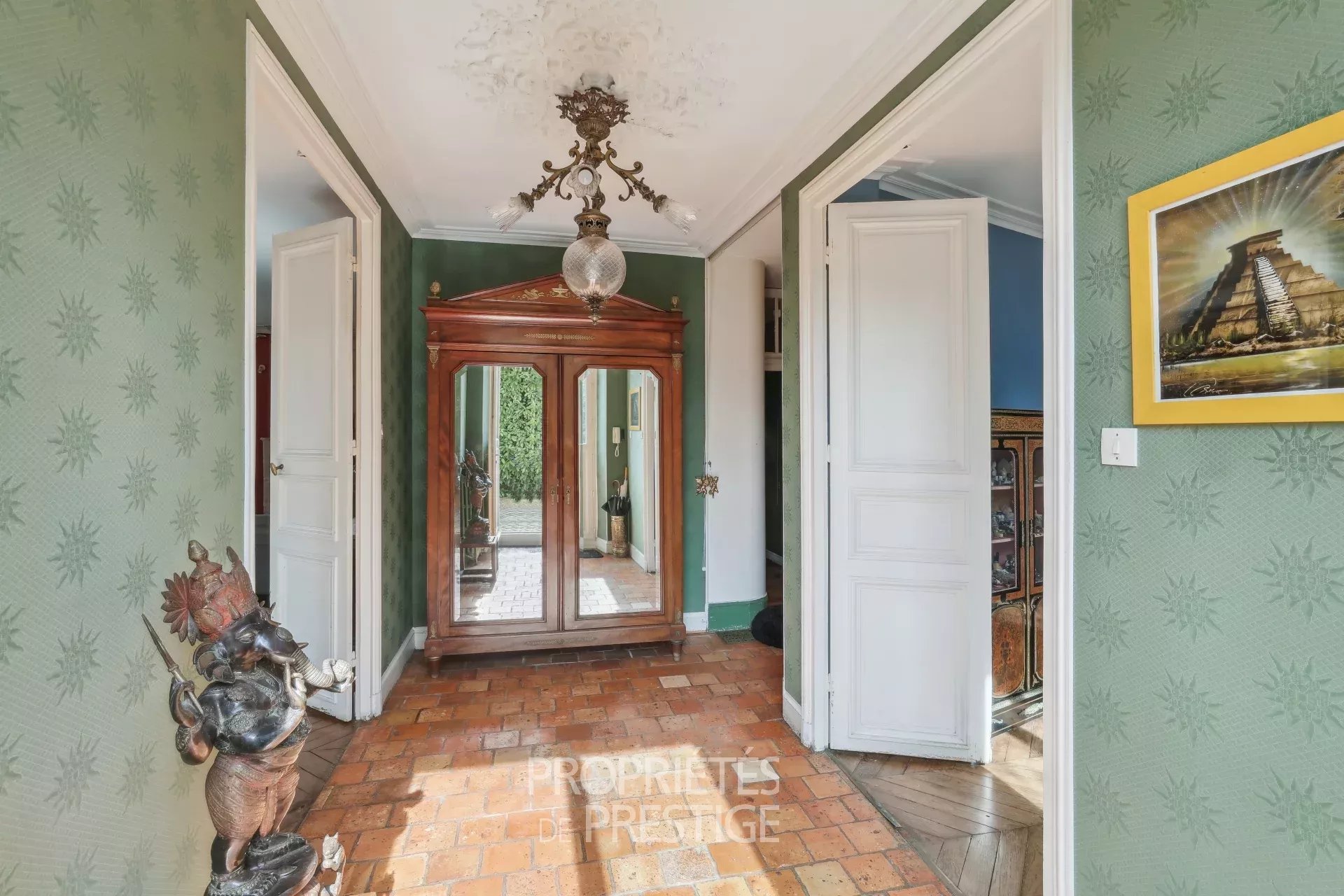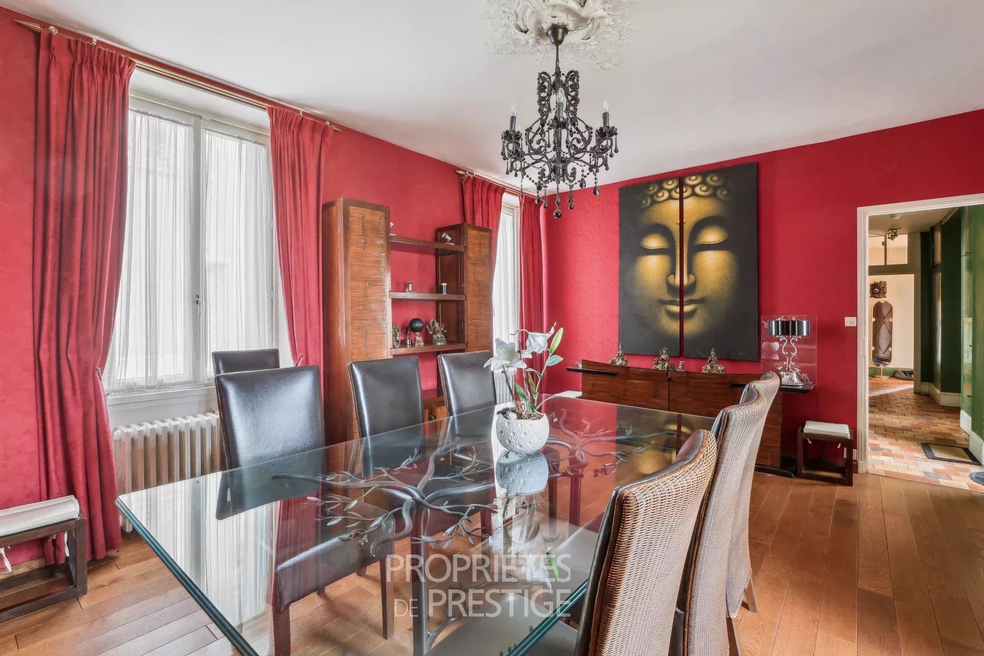 Au coeur d'un village avec écoles et quelques commerces situé entre Thoiry et Montfort l'Amaury, belle demeure fin XIXème de 318m² habitables édifiée sur un parc arboré de 2512m². Le hall d'entrée dessert d'une part un petit bureau, d'autre part, côté parc, un double séjour très lumineux avec cheminée. Un couloir dessert une salle à manger indépendante et la cuisine avec un accès vers une double cave voutée. Au premier étage, une chambre parentale avec boudoir et salle de bain & douche, une chambre avec bureau, une salle de bain et une 3ème chambre. Au deuxième étage, deux chambres, une salle de bain, un atelier et un vaste grenier avec mezzanine. L'ensemble des éléments d'époque ont été préservés : parquets, dallages, boiseries, cheminées, moulures...