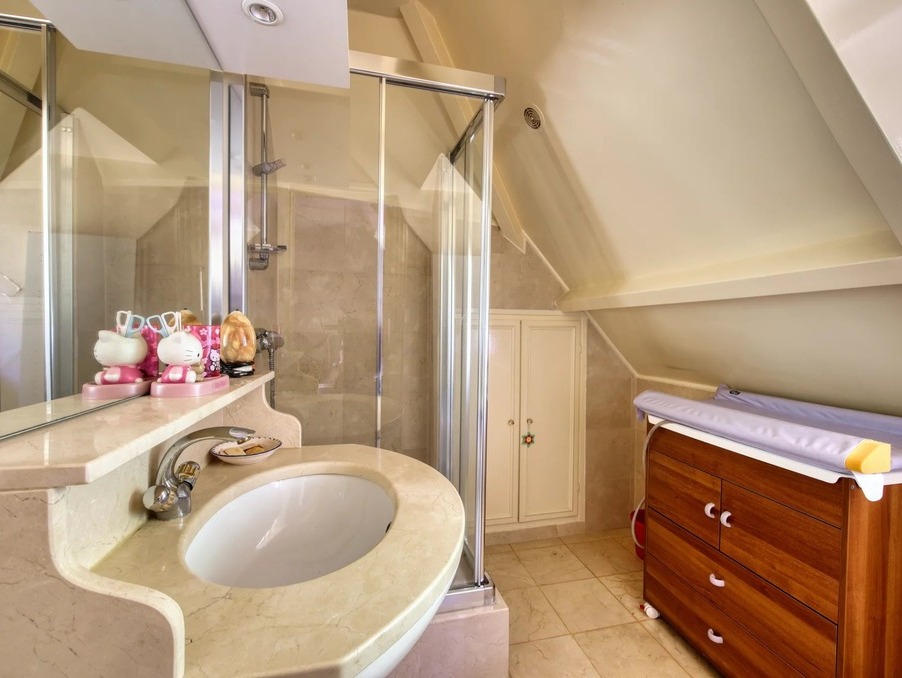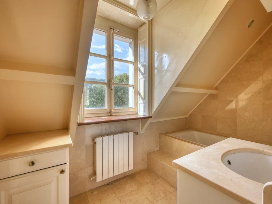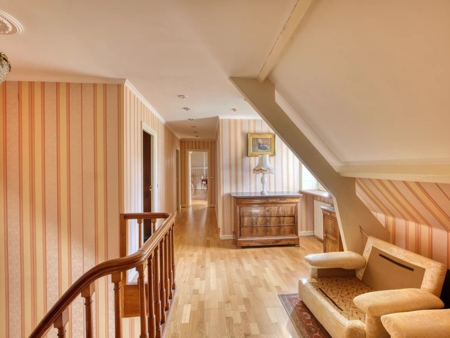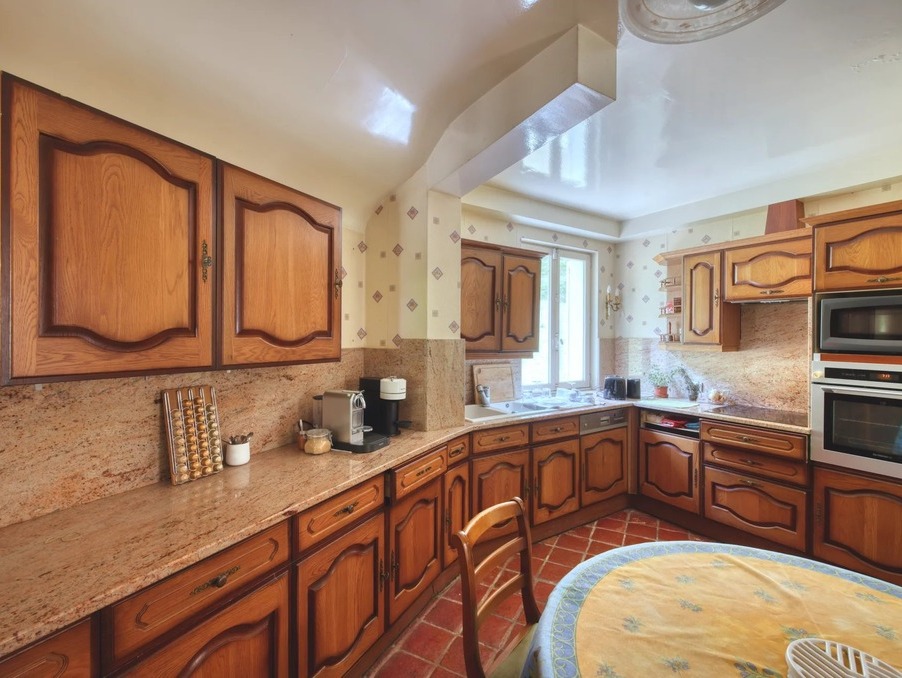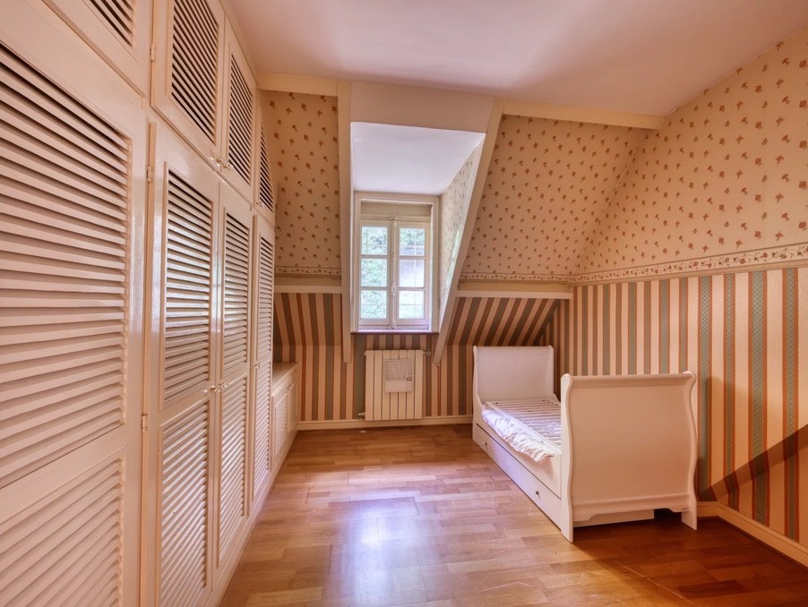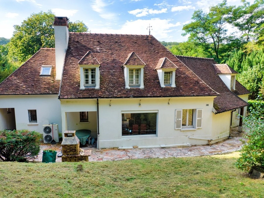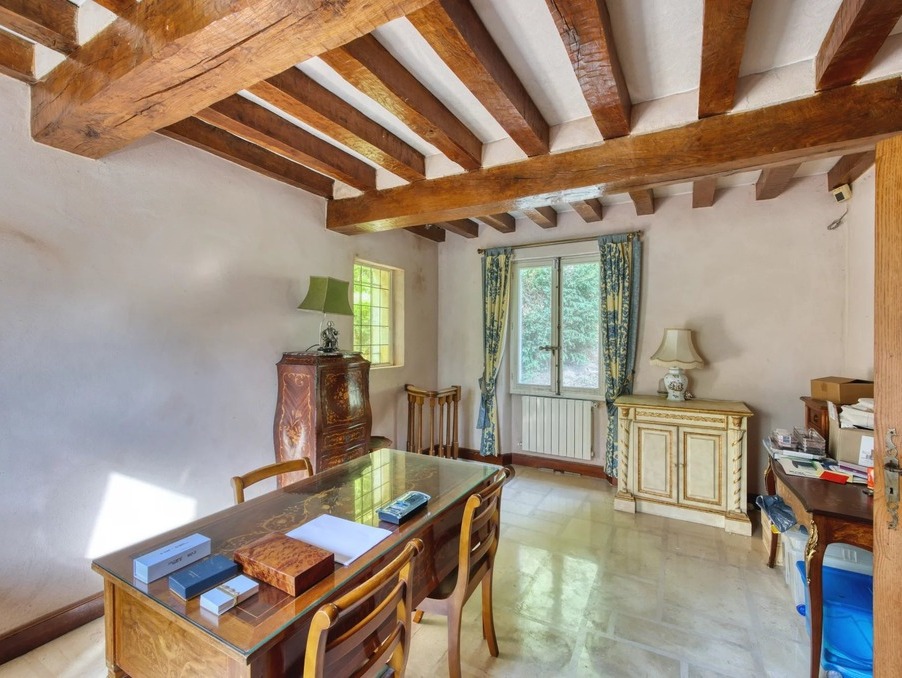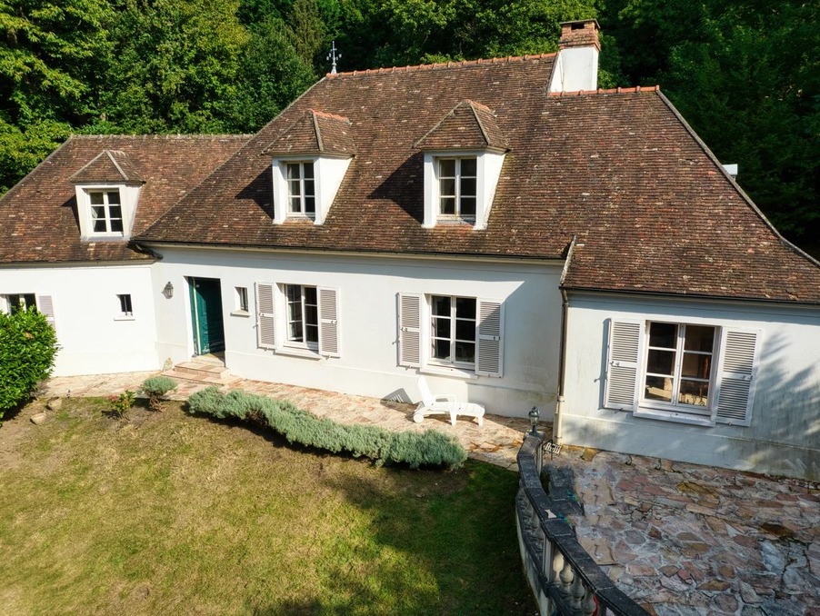 Située à 500 m du centre-village de Buc, cette propriété étendue sur un hectare en lisière de forêt domaniale de Versailles, vous offre un cadre exceptionnel pour la région. La demeure style Ile de France compte un total de 8 pièces sur 287 m² habitables (320m² utiles), dont une vaste réception de 80 m² avec une cheminée ancienne et une double exposition ouvrant sur le parc et la forêt, une cuisine indépendante, un grand bureau... A l’étage, suite parentale avec salle de bain et dressing, trois chambres, deux salles de bain… Le sous-sol est aménagé avec une salle de billard, une cave à vin, des espaces de stockage, une salle forte… Côté jardin, la maison est entourée de terrasses pour profiter de toutes les expositions. La piscine à rénover est exposée plein sud, avec vue dominante sur la vallée. Le parc s’étend jusqu’à la limite de la forêt domaniale bordée d’une enceinte en meulière. Un court de tennis à rénover est situé sur la partie supérieure du parc. Un environnement naturel unique à seulement 13 km des portes de Paris. Golf de La Boulie à proximité. Lycée Franco Allemand à 1,3 km. Possibilités de division et de constructions supplémentaires (environ 4000m² en zone UH du PLU).