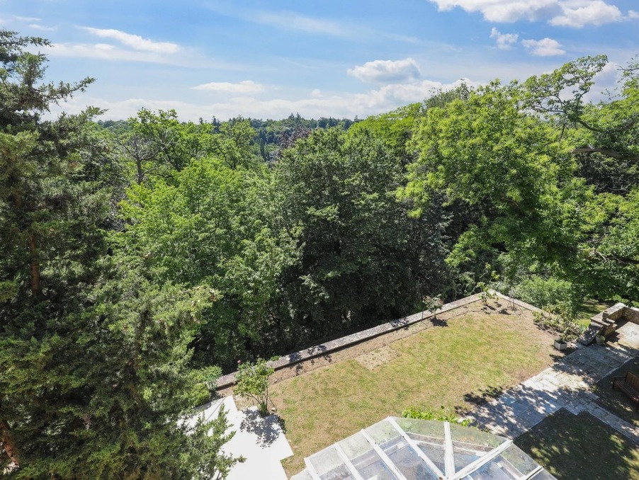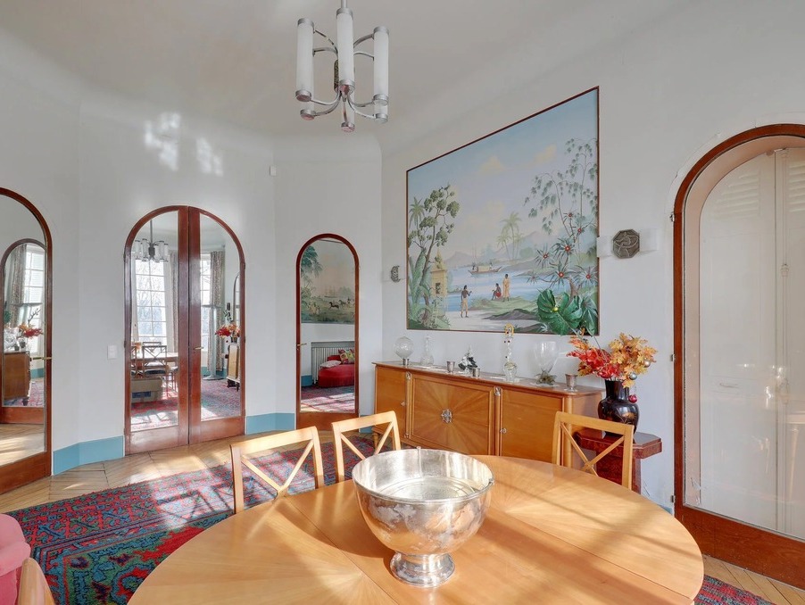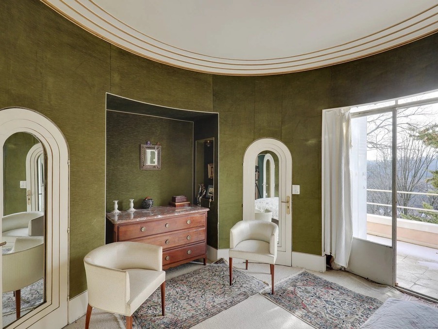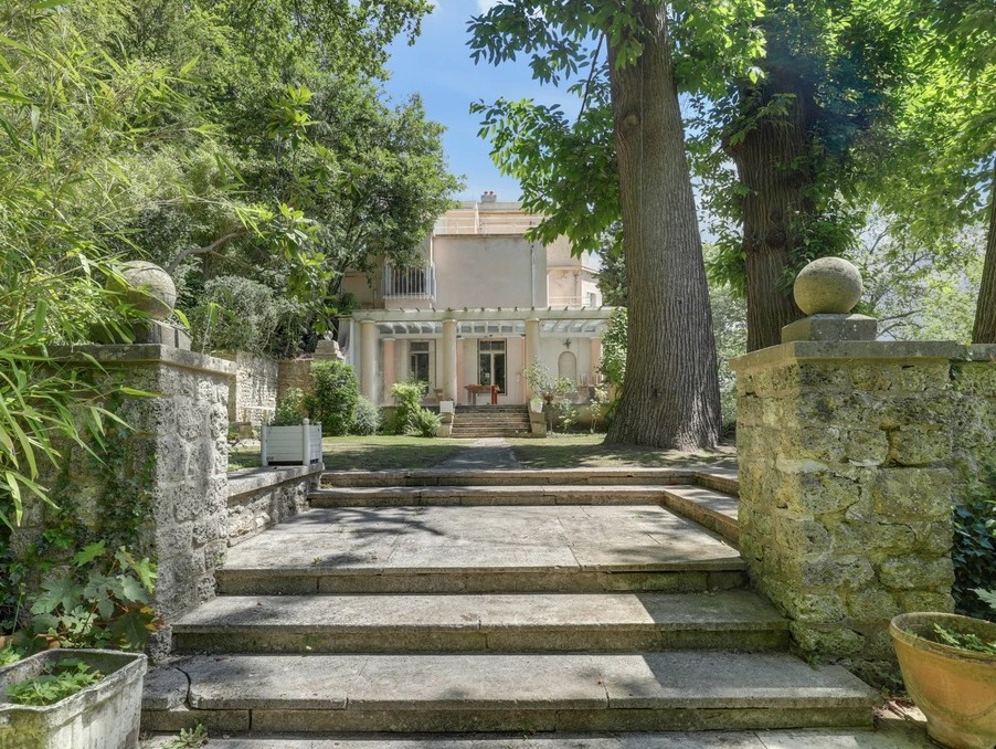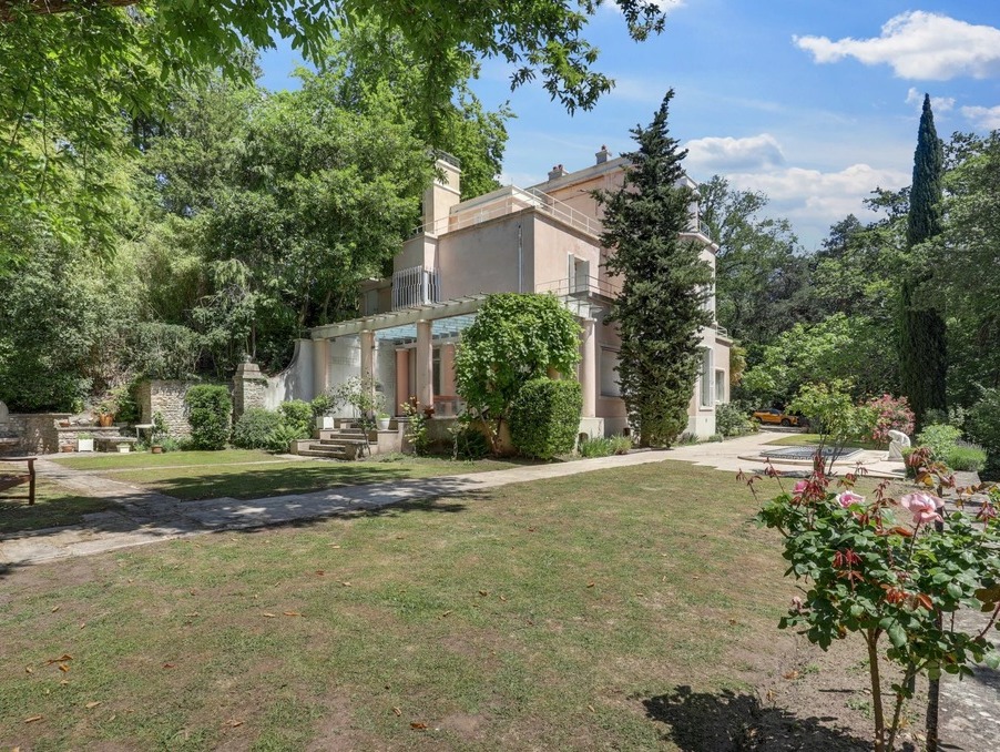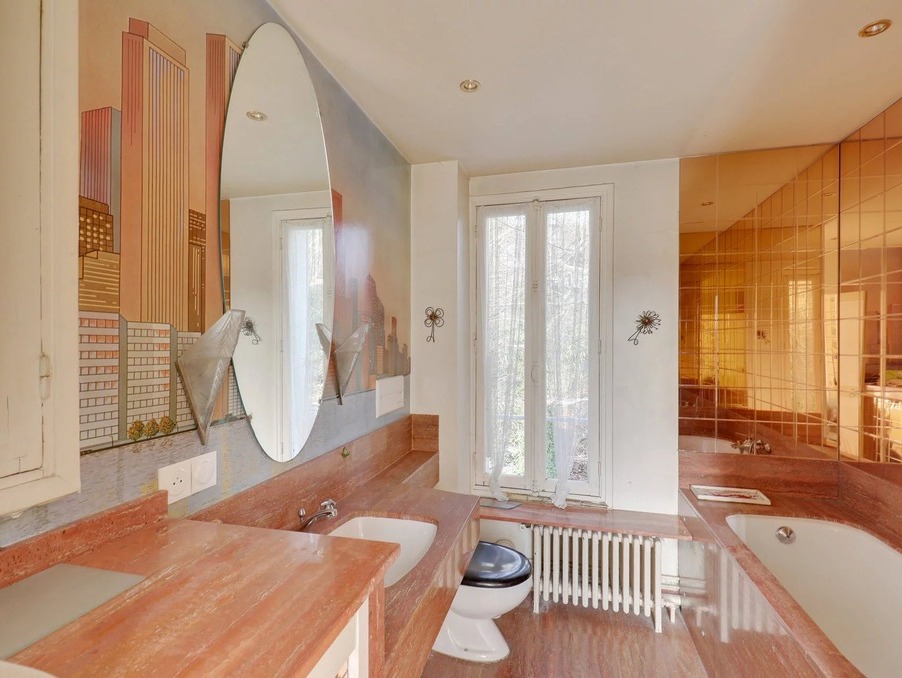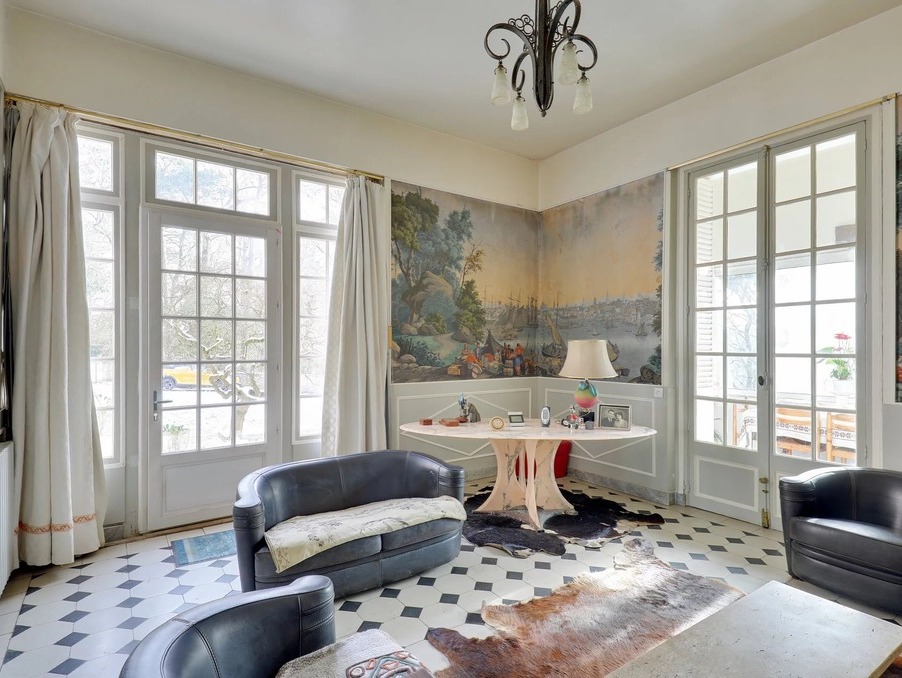 A 4 km au sud de Versailles, dans un parc boisé de près de 2 hectares à flanc de vallée, vaste villa de 439 m² habitables édifiée en 1866 puis remaniée dans un style art déco dans les années 30. Au rez-de-chaussée, un petit salon, une salle à manger art-déco avec bow-window, un grand salon de réception prolongé d'une verrière avec vue parc et vallée. Sur l'arrière de la maison, une cuisine avec espace dinatoire, une buanderie, des caves. A l'étage, une chambre ronde avec terrasse dressing et salle de bain, un grand bureau art-déco, un appartement indépendant avec séjour, kitchenette, chambre, terrasse et salle d'eau. Le second étage comprend 4 chambres, une salle de bain et une salle d'eau, une grande terrasse avec vue panoramique sur la vallée de la Bièvre. Le parc se compose de grandes terrasses et d'une piscine devant la demeure, de cheminements à flanc de coteau sur la partie boisée comprenant de très beaux arbres centenaires. La propriété comprend 2 accès, haut et bas, un garage pour plusieurs véhicules, un logement de gardien, un box à chevaux, une petit pavillon de garde... L'ensemble est situé au calme en fond d'impasse dans un secteur résidentiel, tout en étant à seulement 1 km du centre avec commerces, écoles, gare... Versailles est à 4km, accès A86 à 3 km, Paris à 16 km. Terrain en zone N, non constructible.