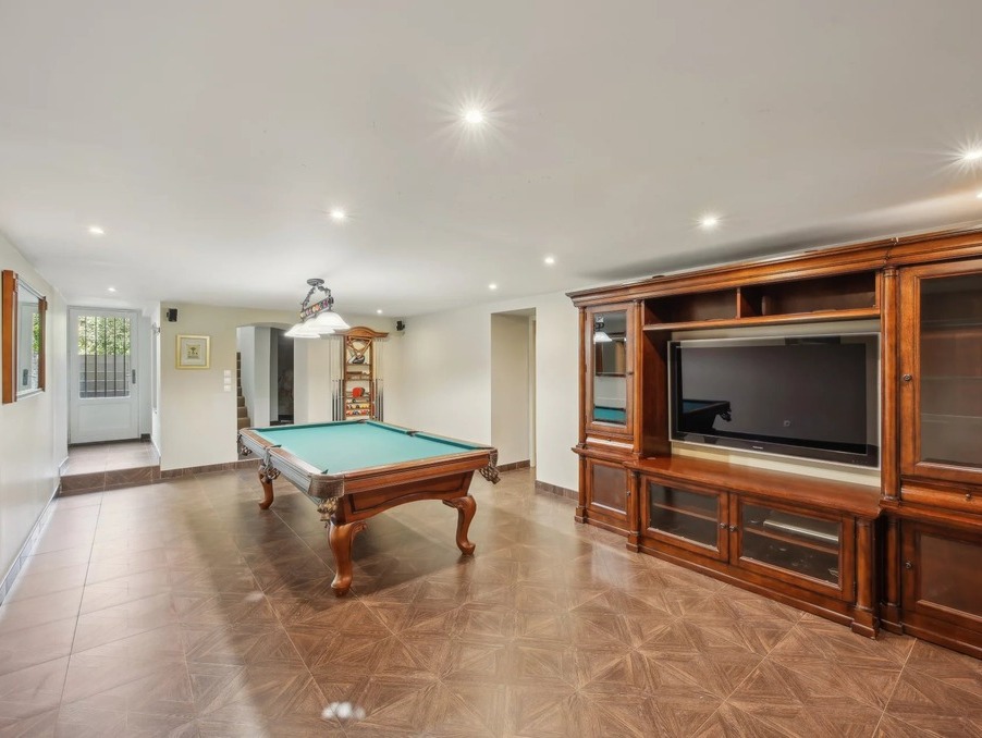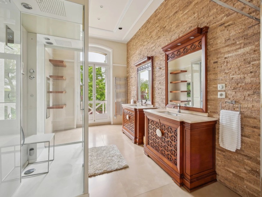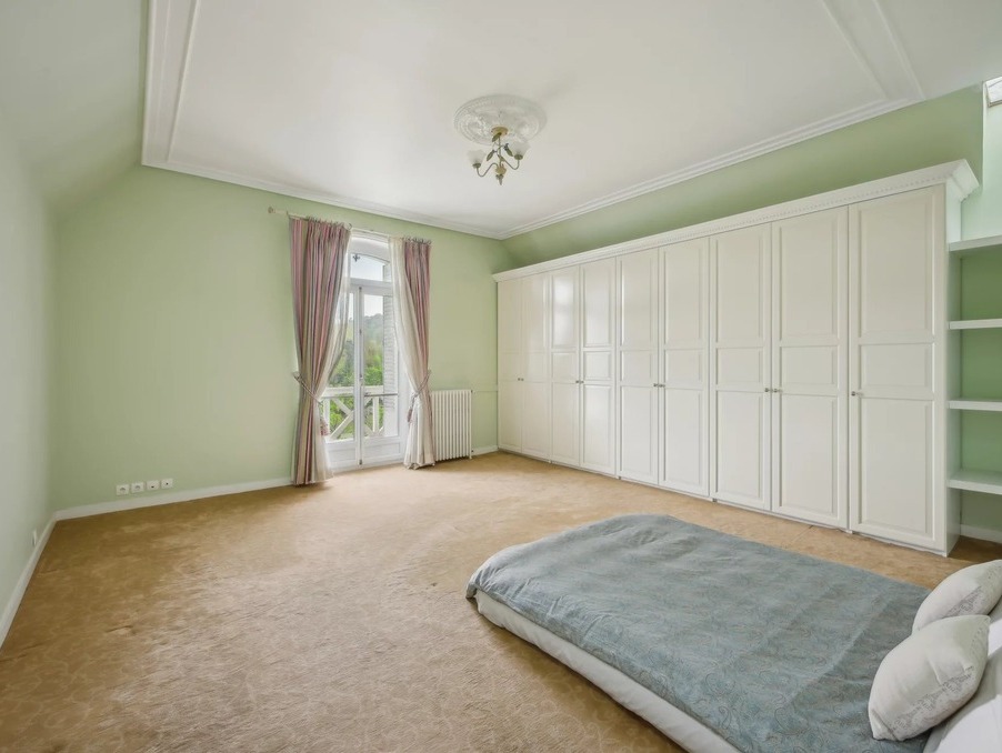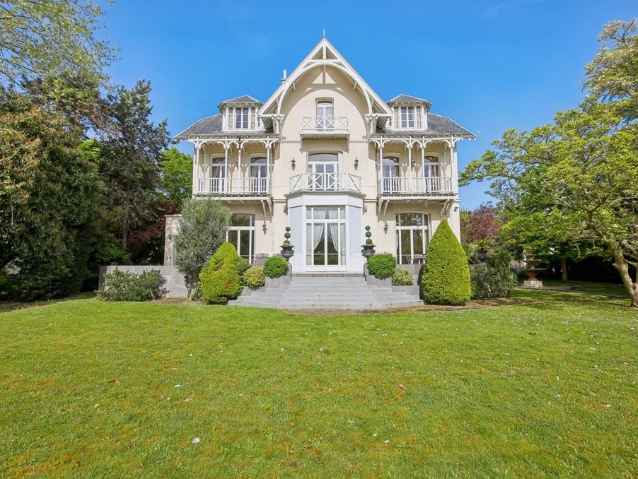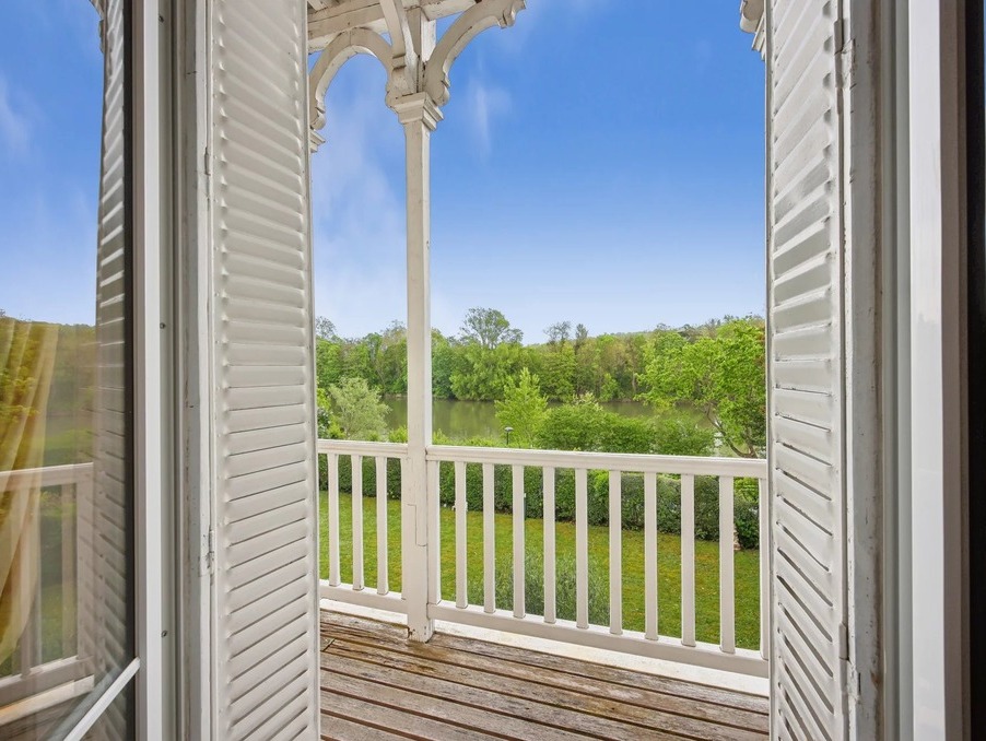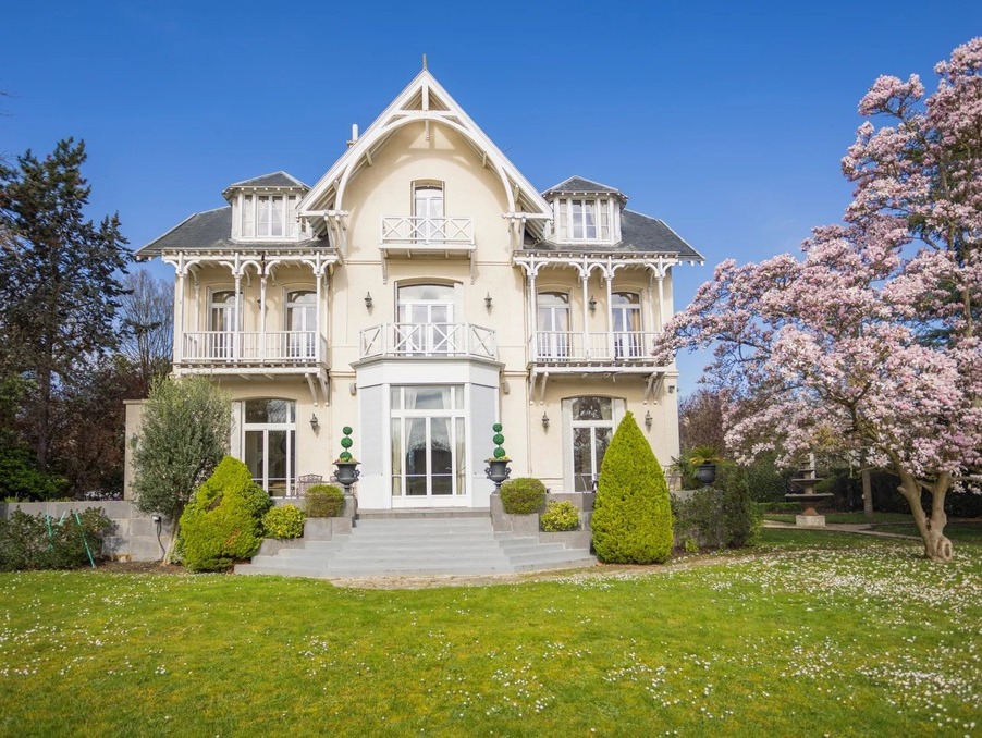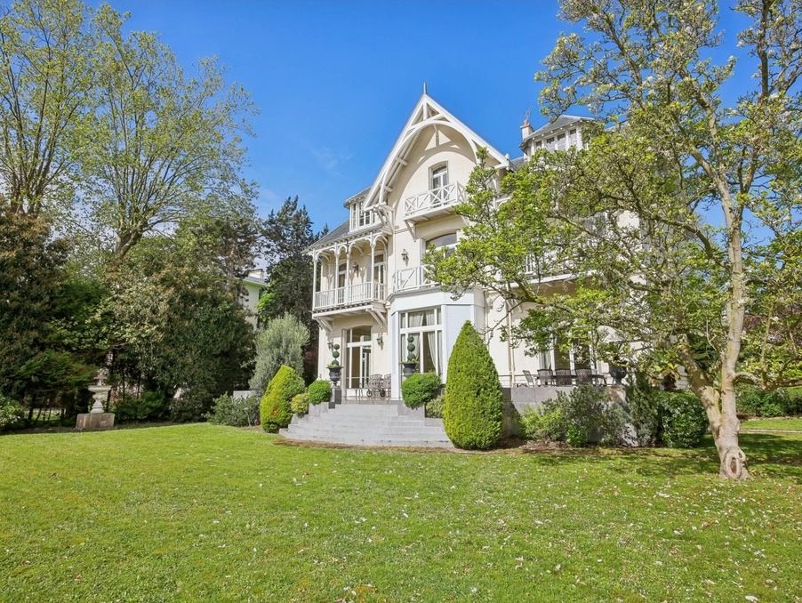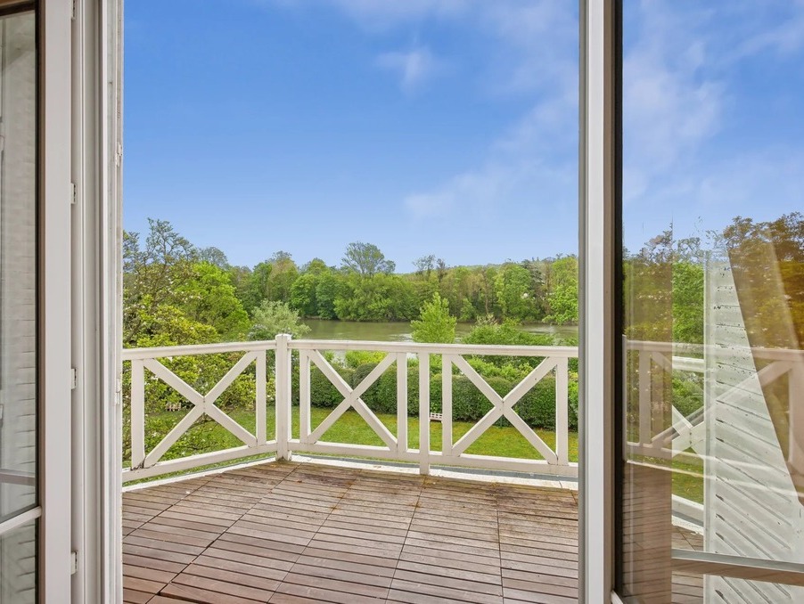 Située sur les berges de la Seine, cette villa de style anglo-normand de 1885, oeuvre de l'architecte Henri Leboeuf, offre 425m² habitables sur trois niveaux, l’ensemble dans un état irréprochable et avec un niveau de prestations remarquable. L’espace de réception de 90m² comprend un vaste hall d’entrée, un salon et une salle à manger en continuité, l’ensemble orienté sur le jardin et la terrasse avec vue sur la Seine. La cuisine avec espace dinatoire et équipements haut de gamme possède également un accès terrasse avec un grand espace barbecue. Un bureau avec accès indépendant complète le rez-de-chaussée. A l’étage, une immense suite parentale comprenant salon avec cheminée, salle de bain et balcon ouvrant sur le parc et les bords de Seine, également une chambre d’invités avec salle de bain et balcon. Le second étage comprend quatre chambres supplémentaires et deux salles de bains. Enfin, un sous-sol entièrement aménagé de 180m² supplémentaires se compose d’une salle de billard, une grande salle de sport, une buanderie et une cave à vin. Le jardin paysagé de 1820m² est exposé au sud du côté des berges de la Seine et comprend du côté de l’entrée, un grand espace pavé et un auvent pour trois véhicules. Toutes les dernières technologies sont intégrées : vidéo, son, éclairage, informatique, alarme, chauffage… Situé à 900m du centre-ville, 1,8 km de l’Ecole Anglaise et du RER-A, 2,5km de l’A86, 13km de Paris.