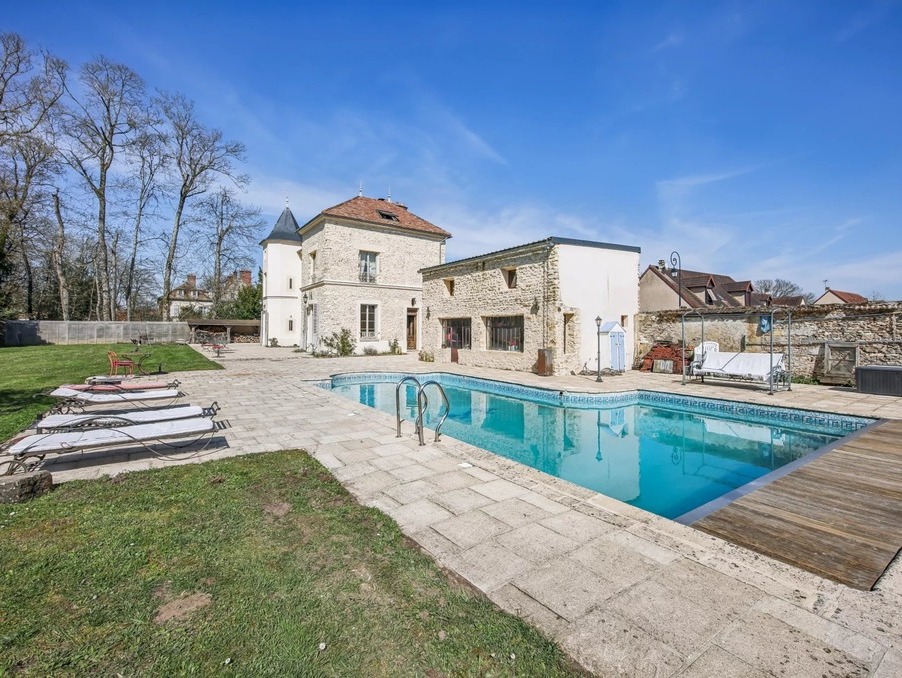Parc Régional de la Vallée de Chevreuse, aux portes de Rambouillet, grande demeure familiale des XVIII & XIXème siècles rénovée en 2004 totalisant une surface habitable de 304 m², édifiée sur un terrain de 8900m². La demeure se compose, au rez-de-chaussée, d'une entrée au pied de la tour XIXème, un grand salon avec cheminée contemporaine, une grande pièce de vie avec espace cuisine, salle à manger et petit salon détente. Egalement à ce niveau, toilettes invités, buanderie et cellier. Au premier étage, un grande chambre avec salle d'eau, une suite parentale avec une chambre, une salle d'eau et un espace bureau & salle de bain. Au deuxième étage, deux chambres avec salle de bain ou salle d'eau, une suite avec chambre, salle de bain et bureau. Au sous sol, une cave voutée avec cave à vin stockage et local technique. Toutes les pièces de vie donnent sur une immense terrasse agrémentée d'une piscine 7x11m, face à un bâtiment annexe de 60m², actuellement atelier d'artiste, pouvant être aménagé en pool house ou maison d'amis. La propriété est agrémenté d'un parc paysagé d'environ 3000m² prolongé d'une partie boisée de 5000m². Possibilité de constructions supplémentaires pour une emprise au sol maximum de 660m². La propriété est située au calme en coeur de village avec écoles, à 6 km du centre de Rambouillet (gare pour Montparnasse en 35 min), 20 km de St Quentin en Yvelines, 42 km de Paris.