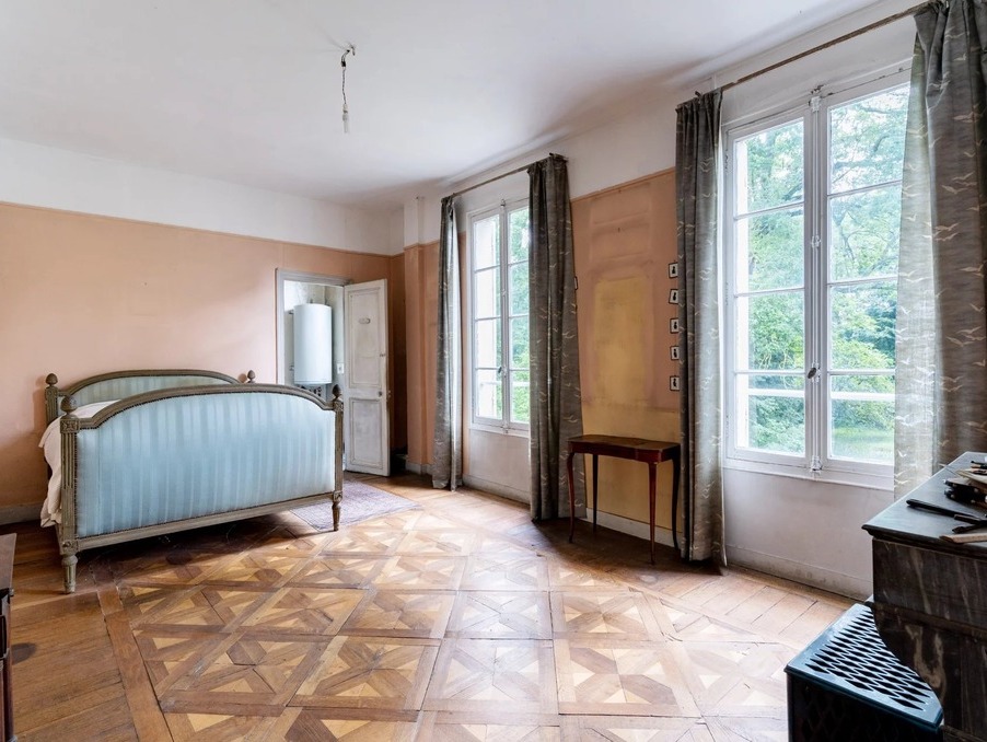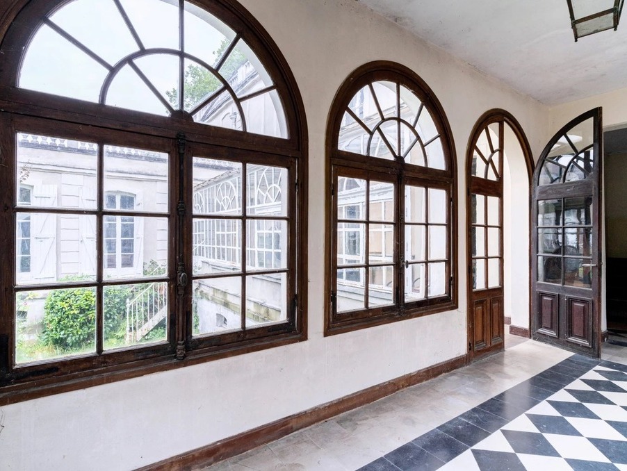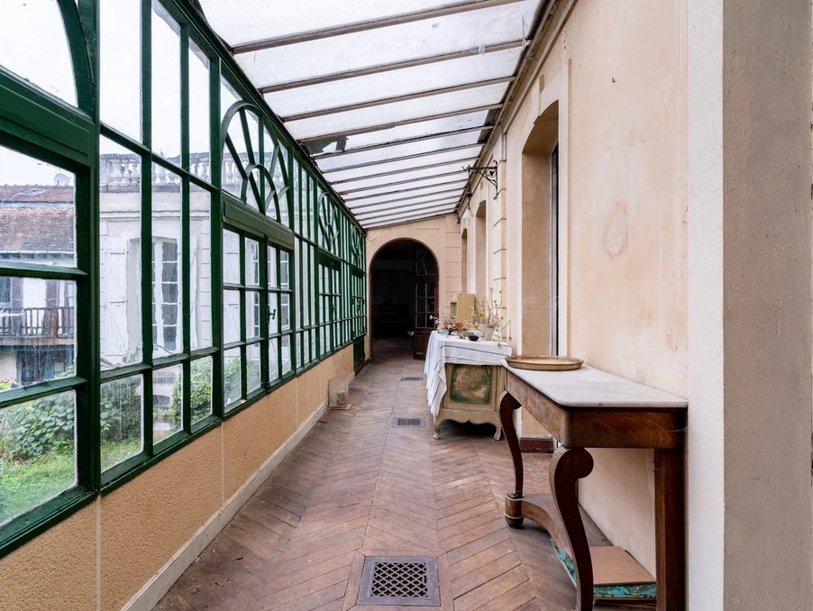 Dans un secteur résidentiel, hôtel particulier du début du XIXème siècle développant 320m2 habitables, édifié sur un parc arboré de 4334m2. L’entrée se fait par un corridor desservant, côte jardin, la salle à manger donnant d’un part sur la cuisine, d’autre part sur un bureau. Côté cour, une galerie permet d’accéder à un grand salon / bibliothèque avec un dôme vitré, puis une immense salle de réception ou atelier d’artiste avec une hauteur sous plafond correspondant à deux niveaux, comprenant une magnifique verrière art-déco, un escalier et une mezzanine en surplomb de la pièce. La plupart des éléments d’époque, dallages, parquets, moulures, boiseries, cheminées...ont été conservés. A l’étage, trois chambres, une salle de bain, un dressing, puis l’escalier se prolonge vers un belvédère donnant accès à un grand toit terrasse. En sous sol, un grand espace de garages, un atelier, une cave à vin... Le parc paysagé comprends des arbres centenaires, une belle végétation, un bassin en pierre avec une statue ancienne. Une jolie maison de gardien d’époque XVIIIème, comprenant un logement sur deux niveaux et des remises en rez-de-jardin vient compléter l’ensemble situé à 700m du centre-ville, 1km de la gare pour Paris Gare de Lyon en 30 min, 24 km de Paris. D’importants travaux de rénovation sont à prévoir. Pas de possibilités de divisions pour des terrains à bâtir.