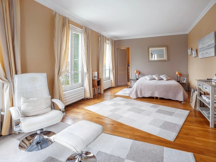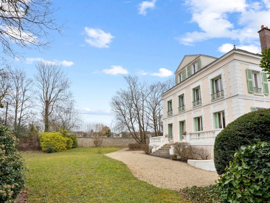 Proche du centre-ville et de la gare de Brunoy, demeure familiale de 300m² habitables (400 m² utiles) construite en 1860 sur une terrain de 2400 m². Au RDC, hall d'entrée avec coin salon et cheminée, double séjour avec cheminée, salle à manger, cuisine indépendante et arrière cuisine. Au 1er étage, chambre parentale avec dressing, salle de bain, bureau, seconde chambre, buanderie, terrasse. Au 2ème étage, 4 chambres, une salle de bain, un débarras. Sous-sol total de 120m² avec garage, atelier, cave à vin. Le parc paysagé et arboré est clos de murs. Possibilité de construction de deux bâtiments complémentaires pour des logements, permis de construire obtenu en sus du prix. La propriété est située à 350 m du centre-ville et de la gare RER D pour Paris Gare de Lyon en 30 mn, Paris porte de Bercy à 22km.